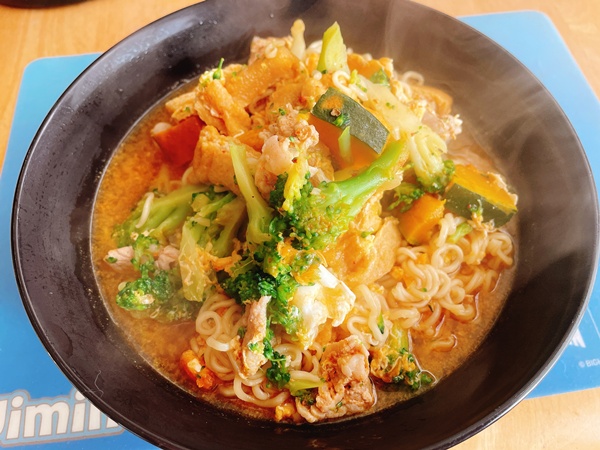 土曜日の昼過ぎご飯。前日あんなに食べて飲んだのに…普通にお腹が減りまして…チャルメラ宮崎辛麺に野菜いっぱい入れて食べました。こうすればきっと体にいいはず。