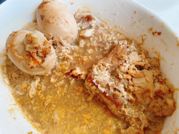 土曜日のお昼はお菓子と前日の残りの煮豚と煮卵、おみやげの萩の調 煌。前日アホみたいに食べて飲んだのに普通に食べてた。