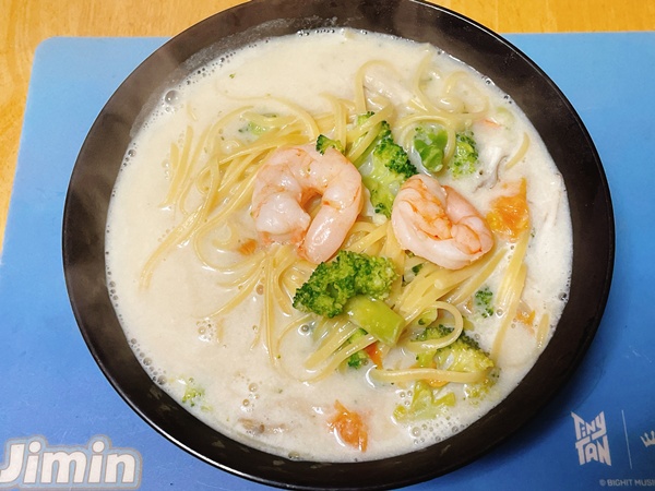金曜日の夜ご飯。昼は連日の食べ過ぎ飲み過ぎだったのでなし。夜はスープパスタ。温かいものは体と心にしみるね。