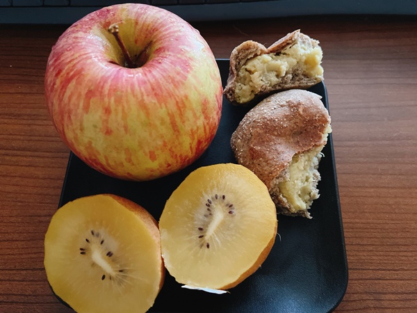日曜日のお昼。お手製のほうじ茶パン(中はさつまいも)とりんごとキウイ。暴飲暴食をしていたら吹き出物がすごいことになって困っています。ビタミンとか果物食べて少しでも肌をいたわりたい。