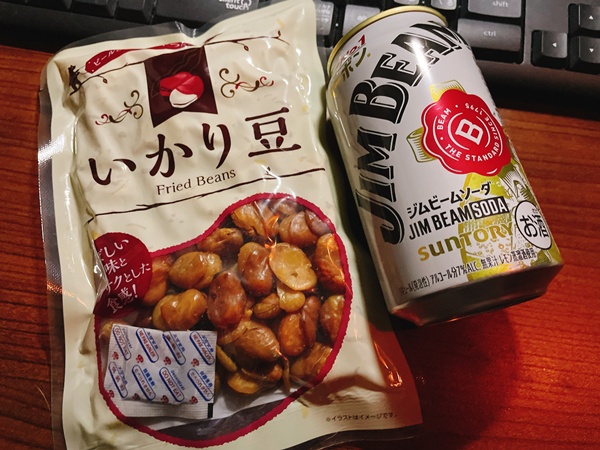 で、いっぱい食べた後に普通に晩酌。いかり豆食べながら、ジムビームソーダと無糖レモンサワー。いかり豆、また買いに行かなきゃ…。