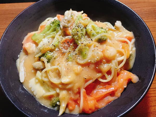 夜ご飯は山盛りパスタ。トマトクリームとシーフードのパスタにしてみた。シーフード美味しい。そして食後に塩大福と花豆食べました。和菓子はきっと体にいいはずと言い聞かせながら、罪悪感を半分くらいにして食べました。