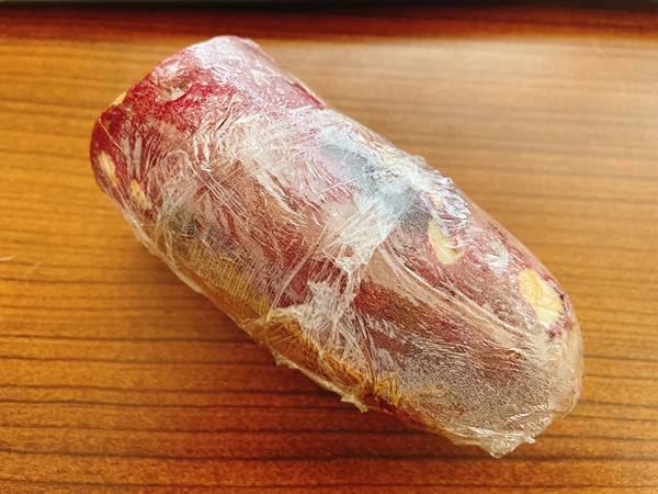 月曜日のお昼はさつまいも。さつまいも、チンしてもずっと硬い所あるやつに当たってしまって悲しかった。